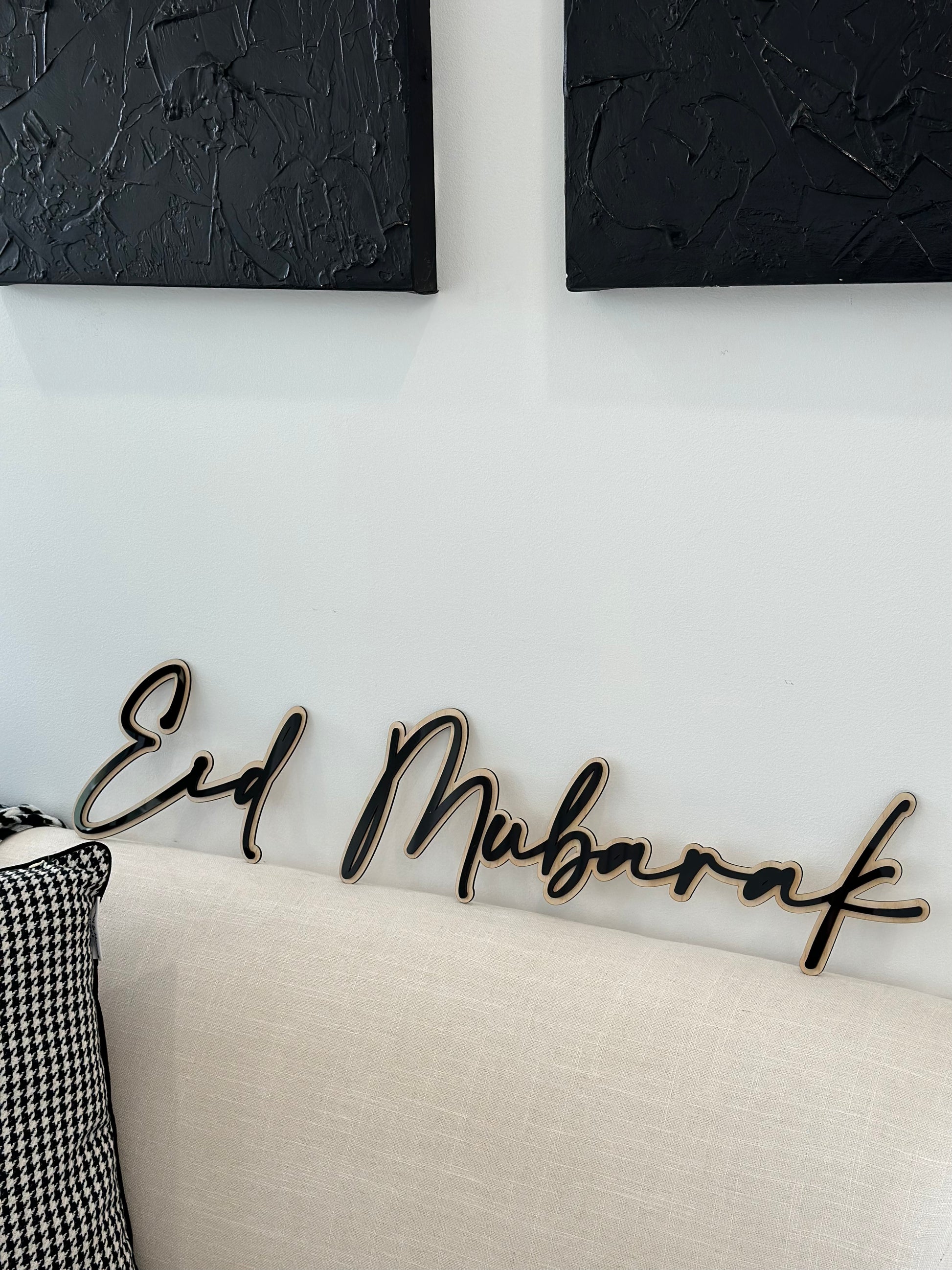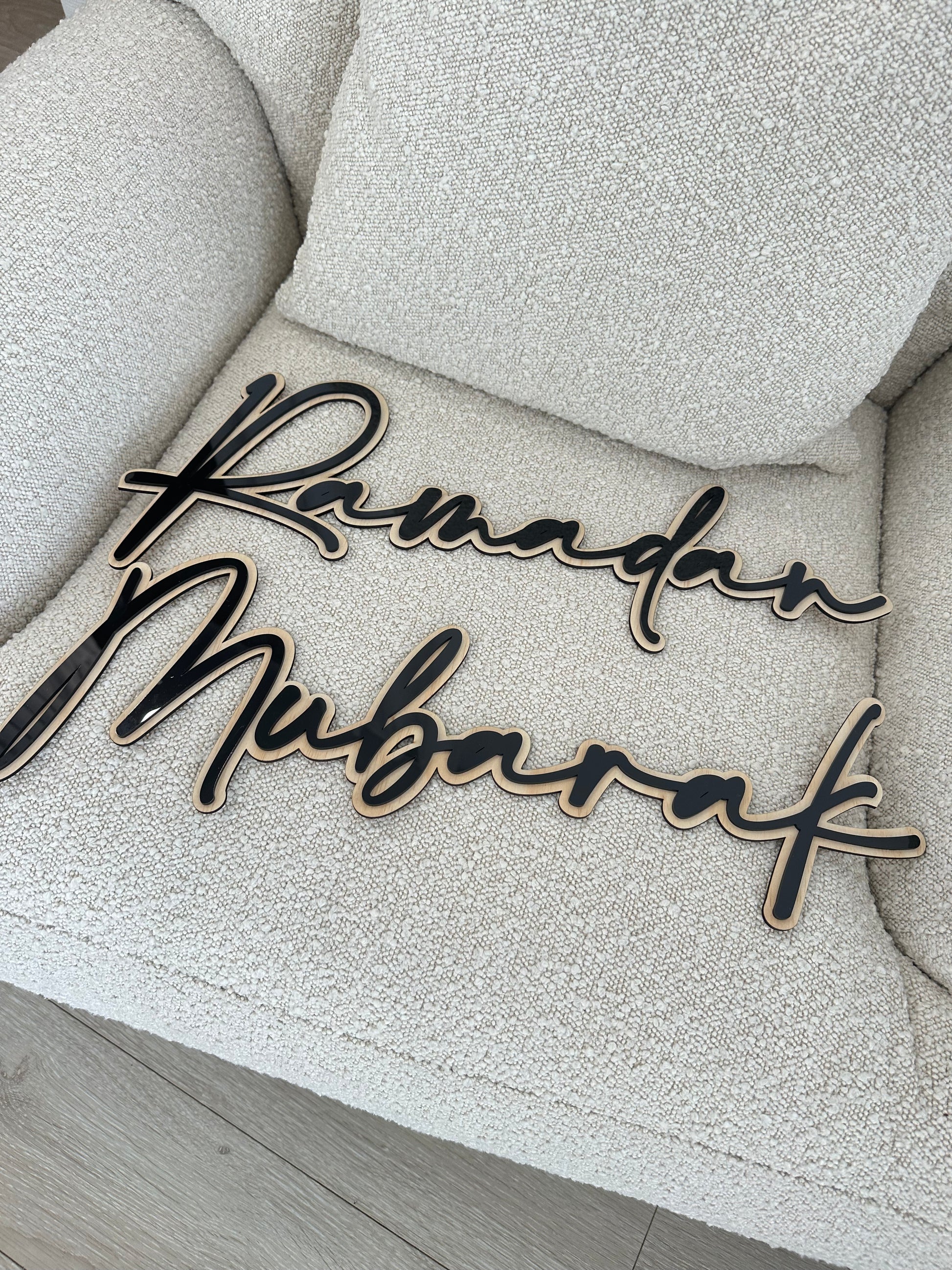 Display this timeless set throughout the blessed month of Ramadan and swap the words to achieve 'Eid Mubarak' for the Eid celebrations. Can be packed and reused year after year. This beautiful set consists of two layers: Plywood backing and Gold Acrylic Text.